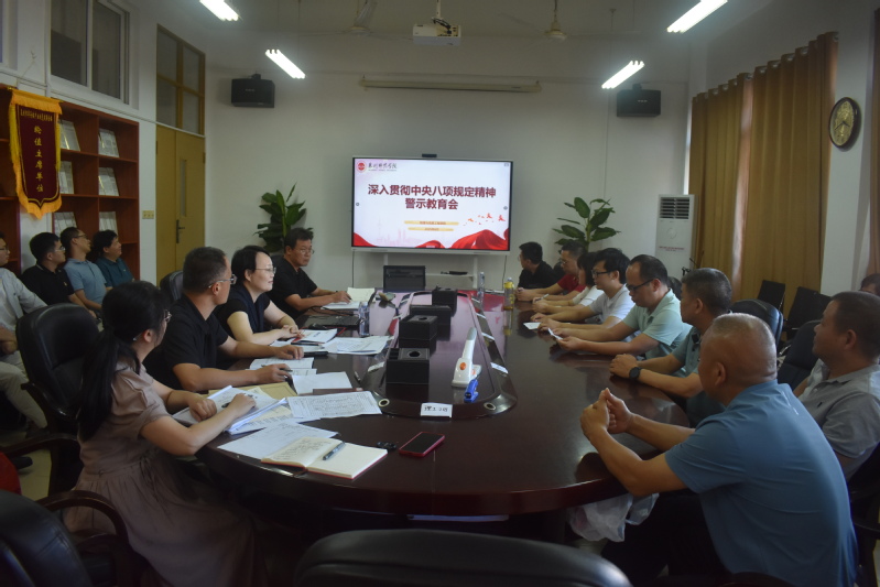 会议深入学习贯彻习近平总书记关于加强党的作风建设的重要论述与重要指示批示精神,传达学习了全省及学校警示教育会精神,以及集中整治违规吃喝问题的相关文件精神。会上还通报了违反中央八项规定精神的查处情况与典型案例,并组织集体观看警示教育片。通过以案说德、以案说纪、以案说法、以案说责,教育引导党员干部进一步知敬畏、存戒惧、守底线,切实增强贯彻落实中央八项规定精神的自觉性与主动性。