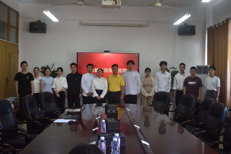 仪式在雄壮的《国际歌》声中开始。与会领导与辅导员郑重为新党员逐一佩戴党徽。鲜红的党徽佩戴在左胸前,标志着新党员光荣加入中国共产党。