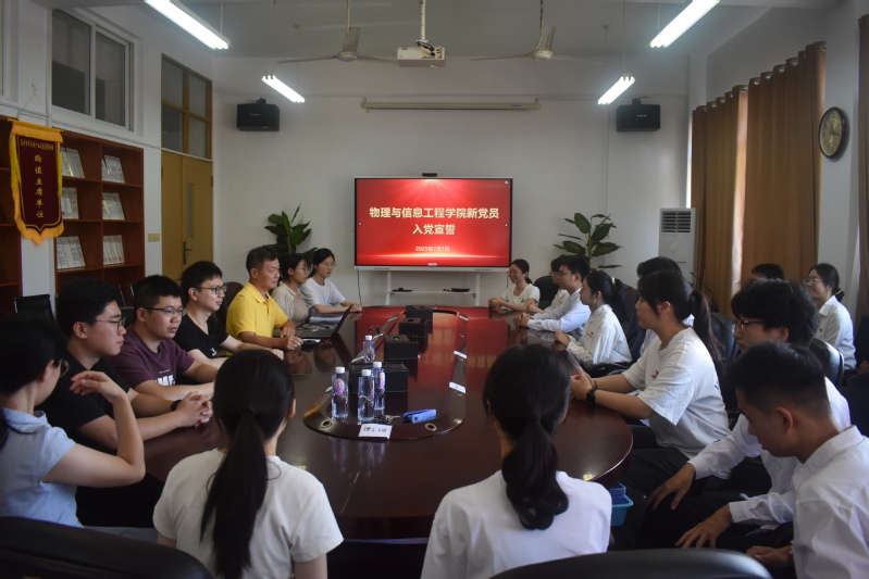 为强化党员党性教育,赓续红色血脉,71日上午,物理与信息工程学院党委在理工楼208会议室庄严举行2025年新党员入党宣誓仪式。党委副书记兼纪委书记洪荣文,全体辅导员及18名新发展党员参加仪式。仪式由洪荣文主持。