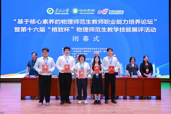 7月25日至27日,基于核心素养的物理师范生教师职业能力培养论坛暨全国第十六届“格致杯”物理师范生教学技能展评活动在宁夏大学举办。来自北京师范大学、华东师范大学、东北师范大学等全国116所高校的1400余名师生齐聚一堂,展开比拼。我校4名学子凭借扎实的专业功底和出色的教学表现,斩获教学技能比赛一等奖1项、二等奖2项、三等奖1项。