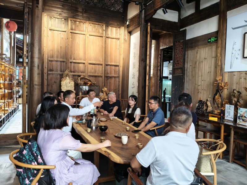 在徐墩镇君煜工艺品推广中心,学院一行受到南平市级建安盏烧制技艺代表性传承人、中心法人代表朱君煜的热情接待。双方围绕数字媒体技术赋能工艺品展示、智能设备优化传统烧制流程等议题展开深入交流,探讨校企合作新路径。