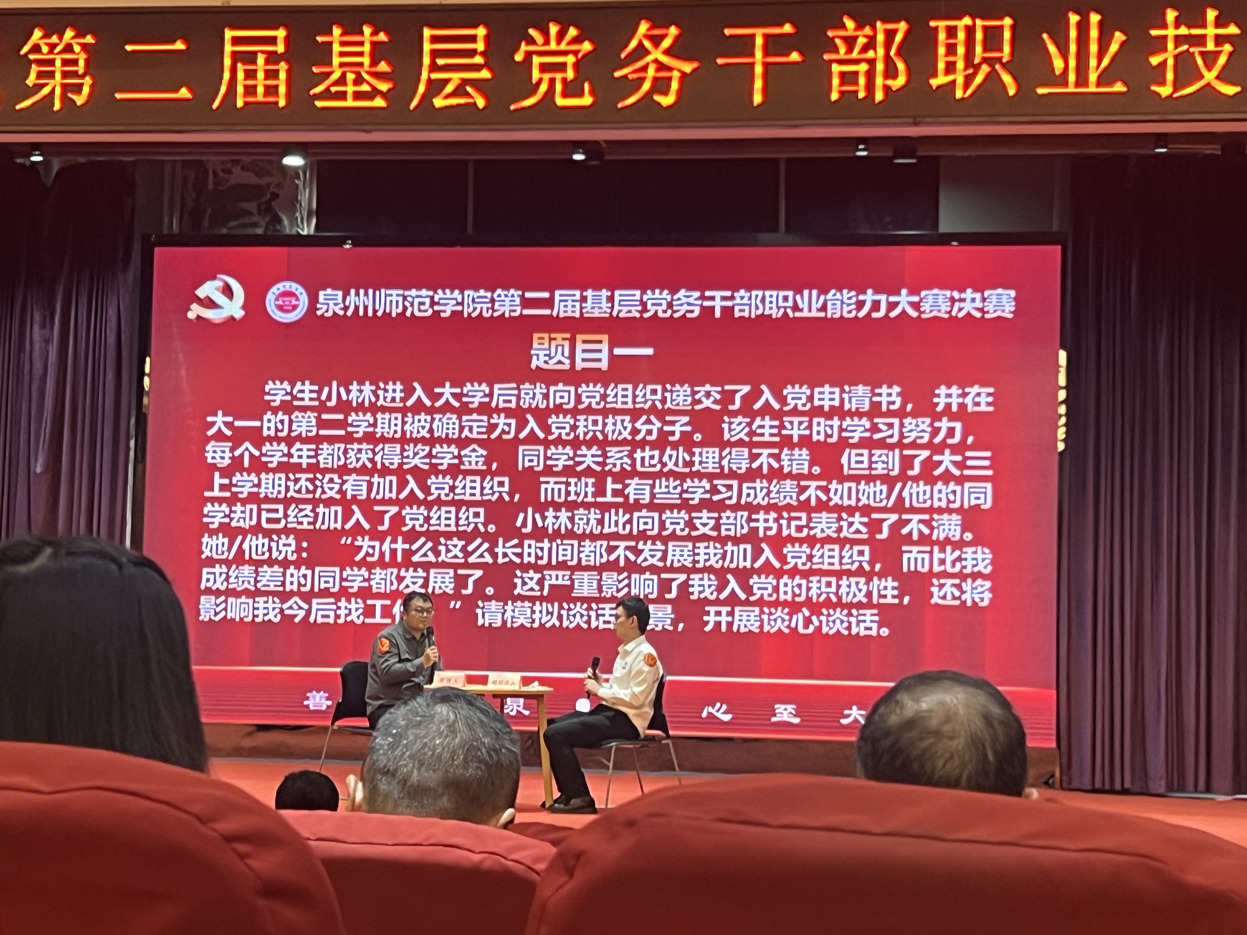 谈心谈话环节,赖鸿作为谈话人,坚守原则、情理并重,有效开展思想引导;黄祖榜作为谈话对象,准确把握思想动态,展现出良好的党性修养与综合素质。两人生动诠释了谈心谈话这一“传家宝”在思想政治工作中的重要作用,赢得现场阵阵掌声。