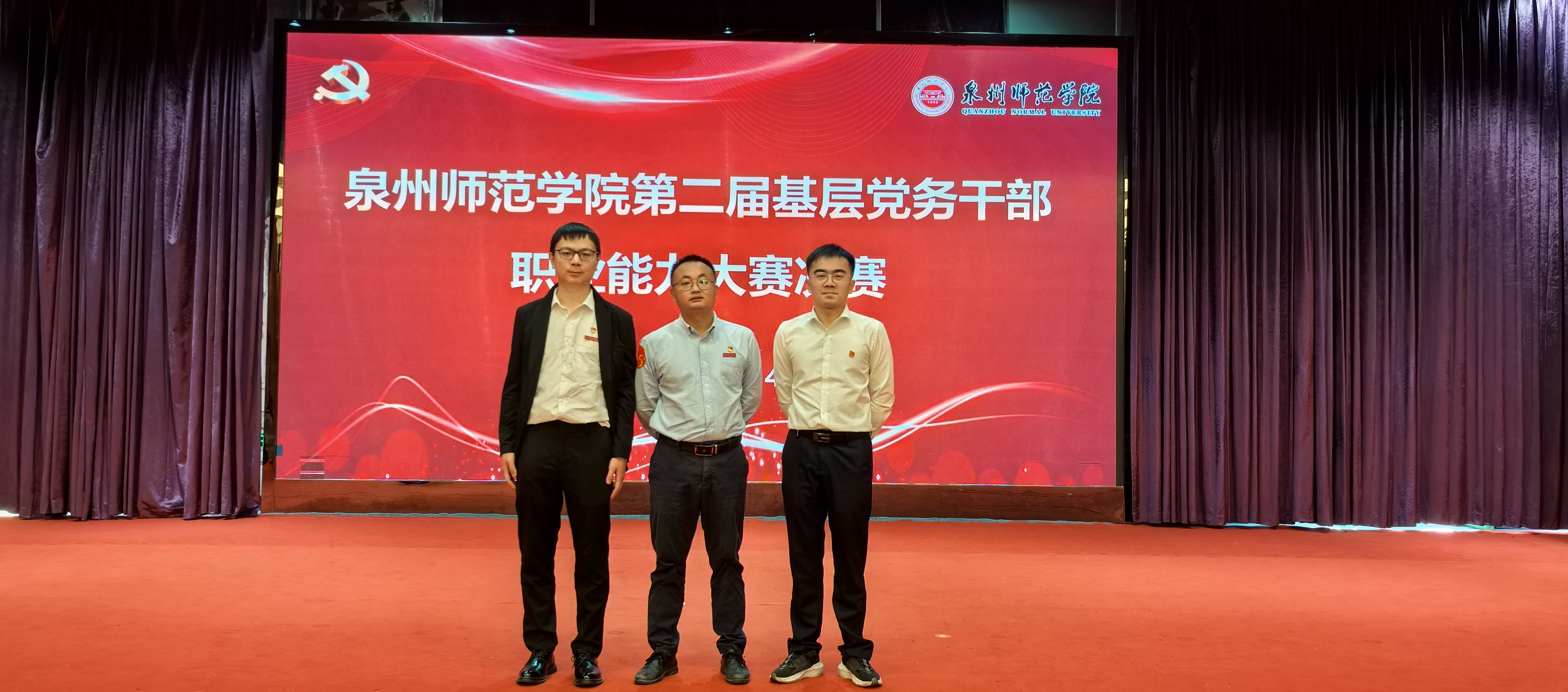 自大赛启动以来,学院党委高度重视,将其作为提升党务干部能力、深化党建工作的重要平台,专门成立备赛工作小组,组织教师党员积极备赛。最终,由专职组织员赖鸿、教工第三党支部书记叶一青、学生第一党支部书记黄祖榜组成的代表队凭借扎实的理论功底与出色的现场发挥,顺利晋级决赛。