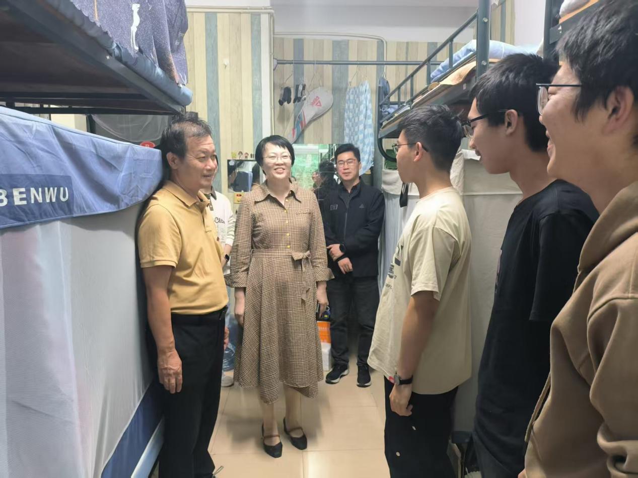 走访期间,吴丽双与同学们亲切交流,细致询问大家的学习生活、运动会参与及思想动态,并查看宿舍设施与环境卫生,叮嘱同学们注意用电安全、保持规律作息,鼓励大家积极参与校园活动,提升综合素养。