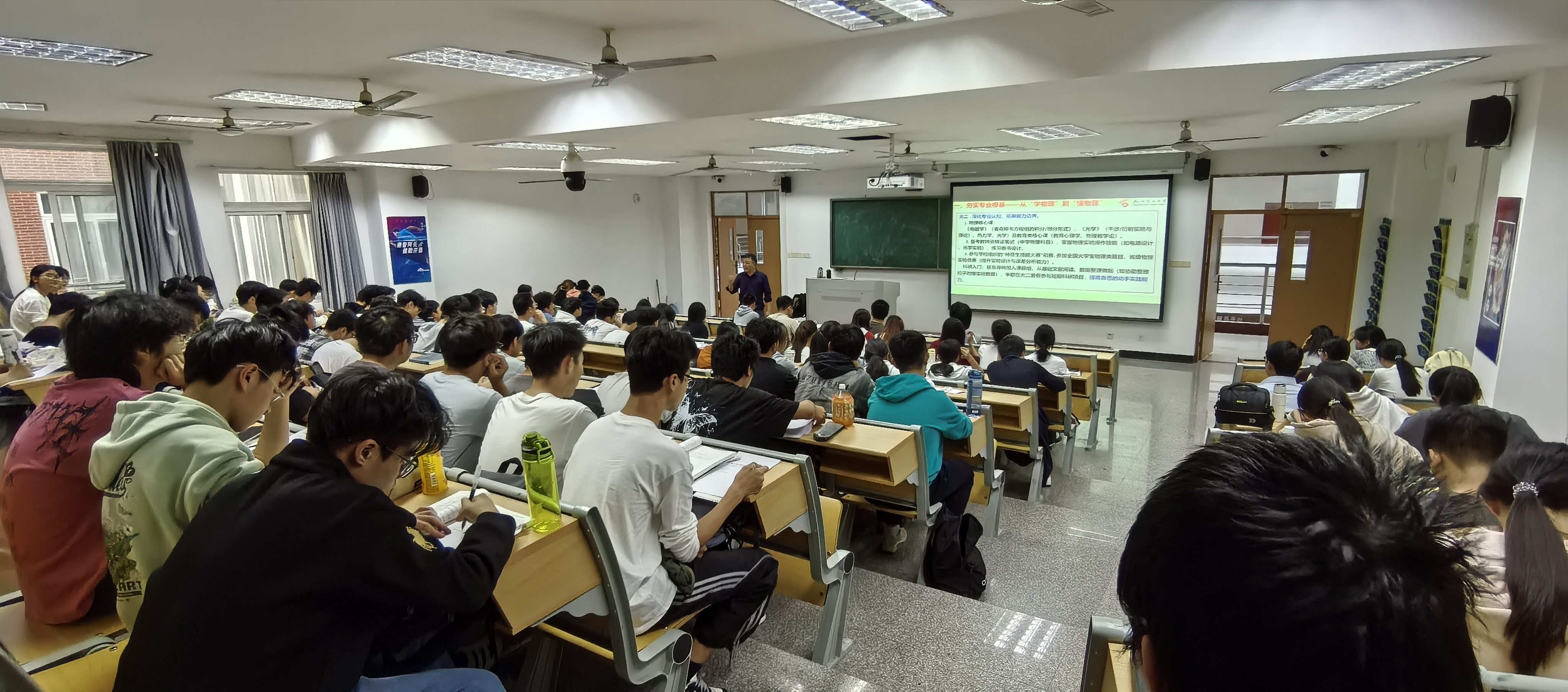 11月28日晚,物信学院邀请88级校友、泉州五中教务处副主任、正高级教师林金亮返校,为物理学专业在校生带来一场精彩的专业导论课。活动由学院党委书记吴丽双主持,物理专业主任蔡美洁、相关专业教师及2025级物理学专业学生近200人参与。