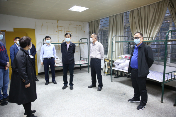 3月13日下午,校党委书记、学校疫情防控应急指挥部总指挥长朱世泽,校长、学校疫情防控应急指挥部总指挥长屈广清带队检查校园疫情防控工作,实地察看主校区疫情防控工作,重点察看原学生活动中心、明德体育馆和医务室、疫情防控物资储备室等重点区域,听取相关部门负责人关于疫情防控工作汇报,并进行现场办公,研究解决有关问题。副校长、学校疫情防控应急指挥部常务副总指挥长陈亚兵,党政办、学工部、后勤处、保卫处等部门负责人参加。