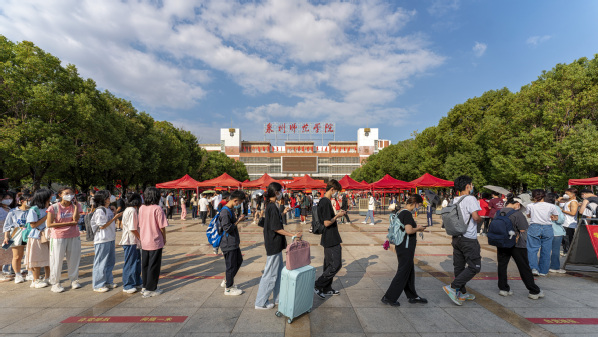 秋日的泉师校园,金秋送爽,丹桂飘香。10月9日,我校泉州主校区、南安校区迎来5900余名来自全国各地的2022级本科生和研究生。萌新们背起行囊、满怀憧憬走进泉师校园,将在这里开启梦想新征程。