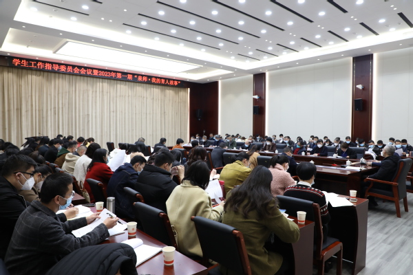 2月9日下午,2023年第一次学指委(扩大)会议暨首期“泉师·我的育人故事”召开。校党委副书记陈晓风出席会议并讲话,各二级学院党委书记,学指会全体成员,学工部、校团委全体成员,全体辅导员,心理发展中心、警务中心负责人参加会议,会议由学工部部长曾碧辉主持。