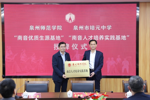 授牌仪式上,朱世泽为培元中学授予“南音优质生源基地”“南音人才培养实践基地”“优质生源基地”牌匾。