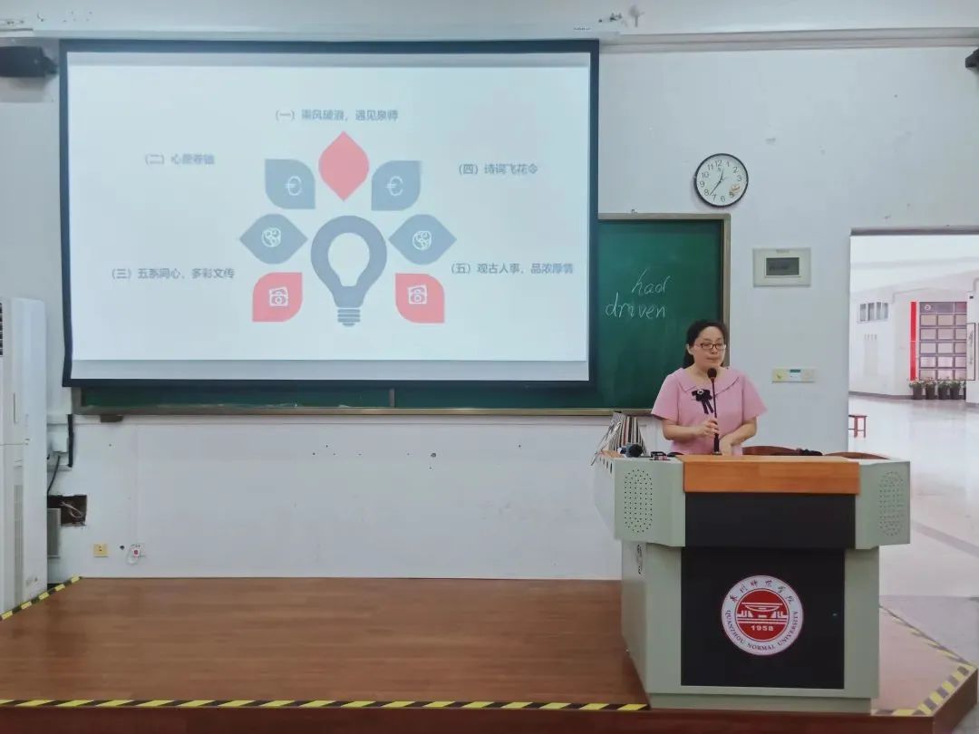 (一)以心换心,做学生青春成长道路的陪伴者。在她眼中,学生就像是自己的弟弟妹妹们,当他们不适应新的大学生活时,她会及时了解相关情况,针对性地为他们提供建设性和帮助性的意见;当他们对自己的专业和未来职业规划产生迷茫时,她不仅仅是在讲台上展开专业教育,还会组织学长学姐分享他们大学的各种心得,在中文专业形成一股“学帮促进”的良好氛围。