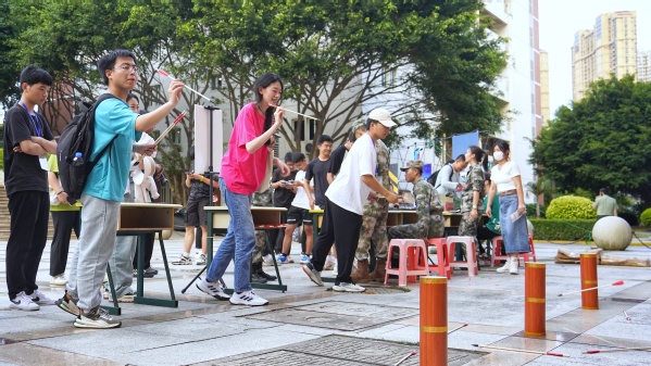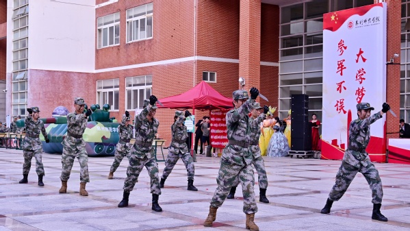活动现场,舞龙舞狮、捕俘刀、歌伴舞、声乐串烧、战术行动等文艺汇演节目紧扣国防教育主题,形式丰富震撼人心我校武装部和丰泽区人武部工作人员现场为学生解答征兵政策,帮助学生熟悉征兵流程、了解军旅生活。线上国防知识竞赛、模拟枪射击、电动水弹枪射击、步枪器分解结合、我和军装合个影、投壶射礼等学生喜闻乐见的活动吸引了众多学生参与,沉浸式体验加深了青年学生对国防知识、征兵政策的认识,激发了泉师学子参军报国热情,营造了关心国防、支持国防、爱国爱军的浓厚氛围。