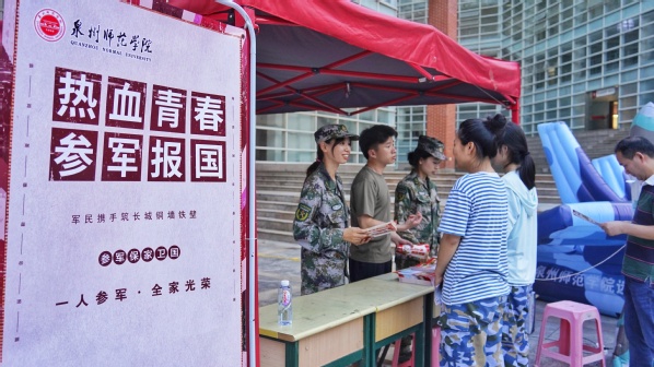 6月1日下午,我校在中山广场开展2023年秋季征兵宣传活动。校党委副书记林伟,泉州军分区动员处处长刘高克,丰泽区委常委、人武部政委方红兵,我校师生代表约1800人参加活动。