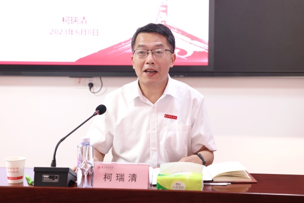6月8日下午,校党委书记柯瑞清在“一站式”学生社区以“以党的创新理论为指引,在推进中国式现代化中谱写青春华章”为题,给青年学生讲授思政课。党政办、宣传部、团委负责人,“青马工程”大学生骨干培训班学员、马克思主义理论读书社成员代表等近40人参加学习。
