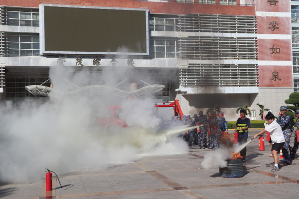 丰泽区消防救援大队、消防救援大队东海站官兵向师生介绍展示了各类灭火器械,讲解火灾事故典型案例,阐述消防安全基本常识和灭火器的使用操作规范等,示范灭火器的正确使用方法,并现场指导参演人员进行灭火器的实操演练。通过实操演练,师生员工进一步了解和掌握灭火器的使用方法,提升消防安全意识和应对突发事件的处置能力。