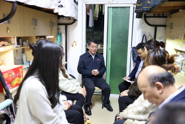 12月5日晚,校党委书记柯瑞清深入学生公寓B区看望挂联宿舍学生,与同学们进行亲切谈心谈话。党政办、学工部和音乐与舞蹈学院有关人员陪同。