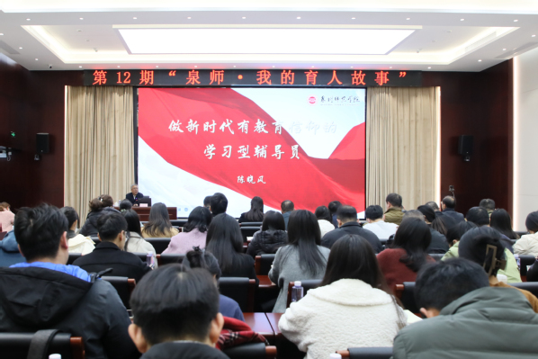 12月20日下午,我校举办2023年第12期“泉师·我的育人故事”,校党委副书记陈晓风作题为《做新时代有教育信仰的学习型辅导员》专题辅导讲座。学工部、校团委、心理发展中心全体成员,各二级学院党委副书记、全体辅导员参加。