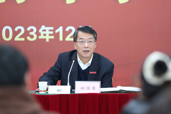 交流中,柯瑞清就学生代表关于人生理想的提问畅谈感悟,给予殷殷嘱托。他从理论维度、文化维度、实践维度三个方面阐释新时代“自找苦吃”的深刻内涵和表现形式。他说,虽然时代在变化,但是吃苦精神的本质价值没有改变,“自找苦吃”不是被动吃苦,而是要主动在困难中调整心态,磨练意志;不是盲目吃苦,而是要理论联系实际,在实践中积累经验,增长才干;不是胡乱吃苦,而是结合自身的实际情况,循序渐进,量力而行。他对同学们提出三点新年期望:一要远眺前路、树立理想,用青春奋斗照亮建功新时代的脚步;二要拓宽天地、敢于担当,争做一名有志青年、有识青年和有为青年;三要淬炼青春、勇于奋斗,在奋斗过程中留下最为珍贵的青春印记。