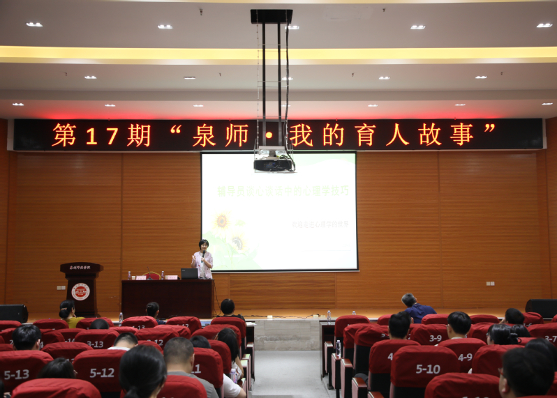 5月8日下午,我校举办第17期“泉师·我的育人故事”,厦门大学心理咨询与教育中心主任赖丹凤副教授应邀作题为“辅导员谈心谈话中的心理学技巧”专题讲座。学生工作部、校团委全体成员,各二级学院党委副书记、全体辅导员参加。