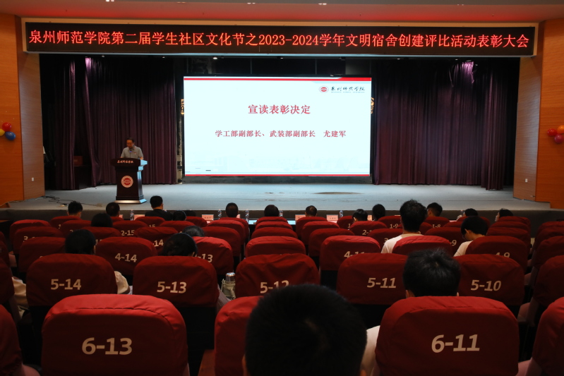 6月6日下午,我校举行2023-2024学年文明宿舍创建评比活动表彰大会,学生工作部、宿管中心、后勤管理处、保卫部相关老师,二级学院学生工作负责人、辅导员和受表彰的学生代表参加。