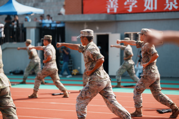 军训团团长李康洪希望参训学生发扬不怕苦、不怕累的精神,端正态度、互学互助,服从命令、听从指挥,刻苦训练,科学训练,安全训练,争当训练勇士,军中木兰。同时要求全体教官严以律己、树好形象,履行职责、遵规守纪;按纲施训、循序渐进,以饱满的热情和昂扬的斗志投入到军训任务,并祝愿军训圆满成功。