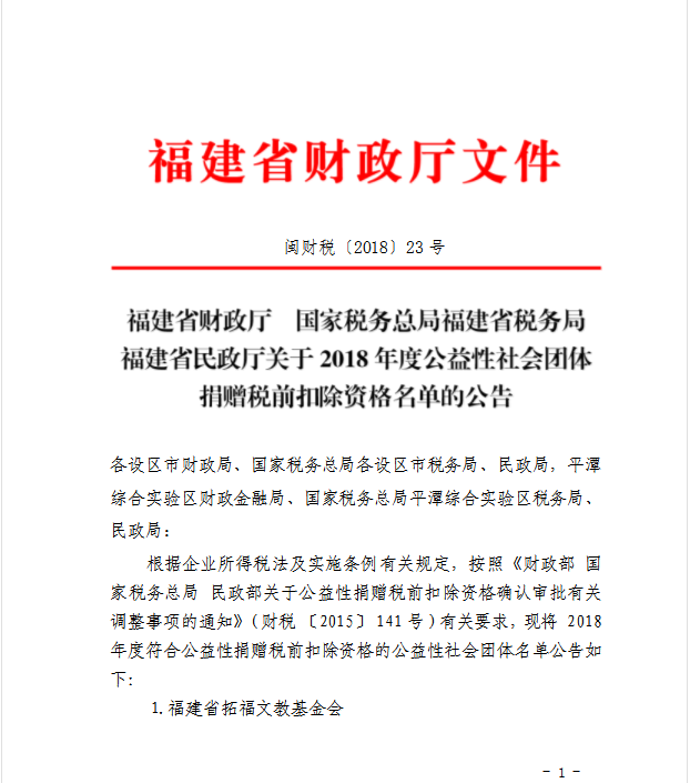 我校教育发展基金会获得2018年度公益性捐赠税前扣除资格
