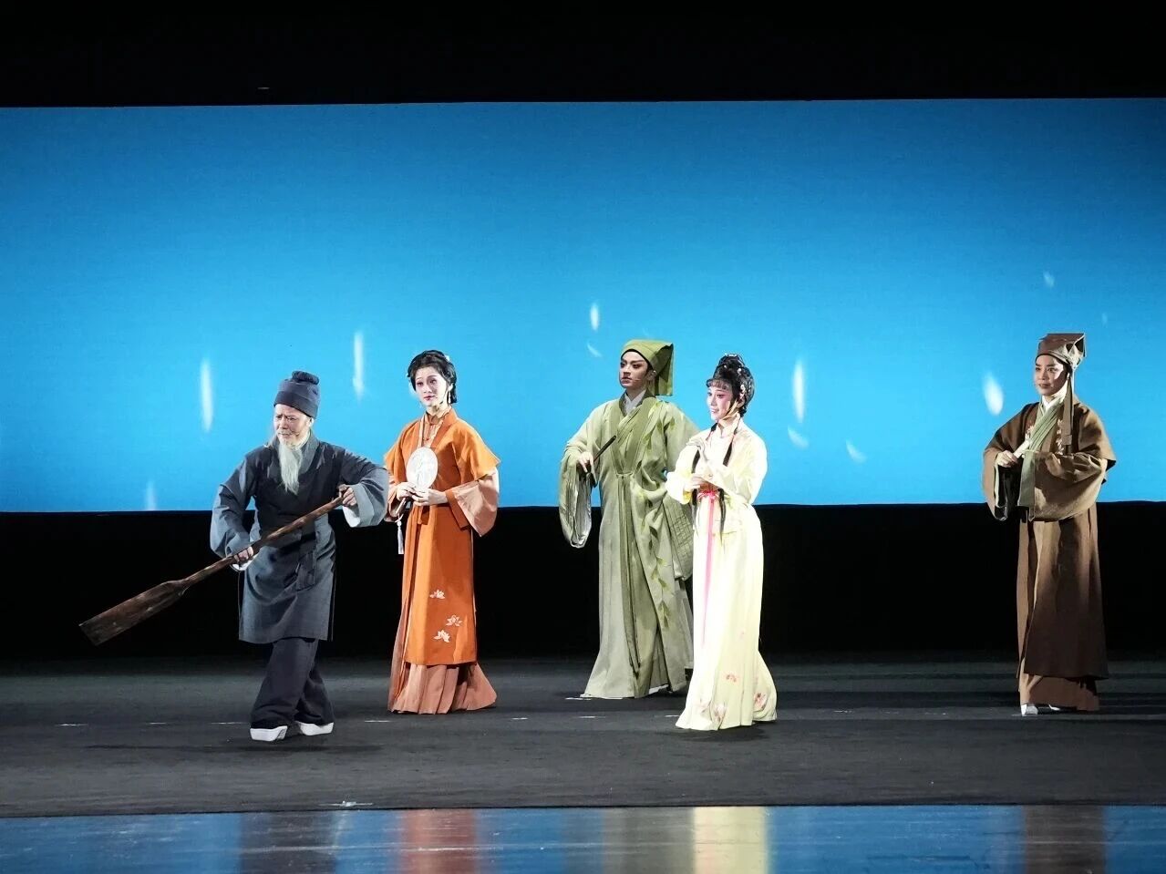 《潇潇春雨》以婉转清丽的尹派唱腔为韵,辅以诗化的舞台美学与创新叙事手法,在传统越剧韵味中注入现代戏剧张力,共赴春雨之约,在柔美水袖与缠绵唱词中,感受穿越时空的艺术悸动。《玉蜻蜓》是越剧传统骨子老戏,也是“尹派”艺术的代表剧目之一,有着深情婉转的唱腔、曲折动人的剧情和深刻的人性探讨。演出过程中,同学们全神贯注,不时为演员们的精彩演出报以热烈掌声。演出结束后,同学们纷纷表示,这是他们第一次近距离欣赏越剧表演,深刻感受到了传统艺术的独特魅力。