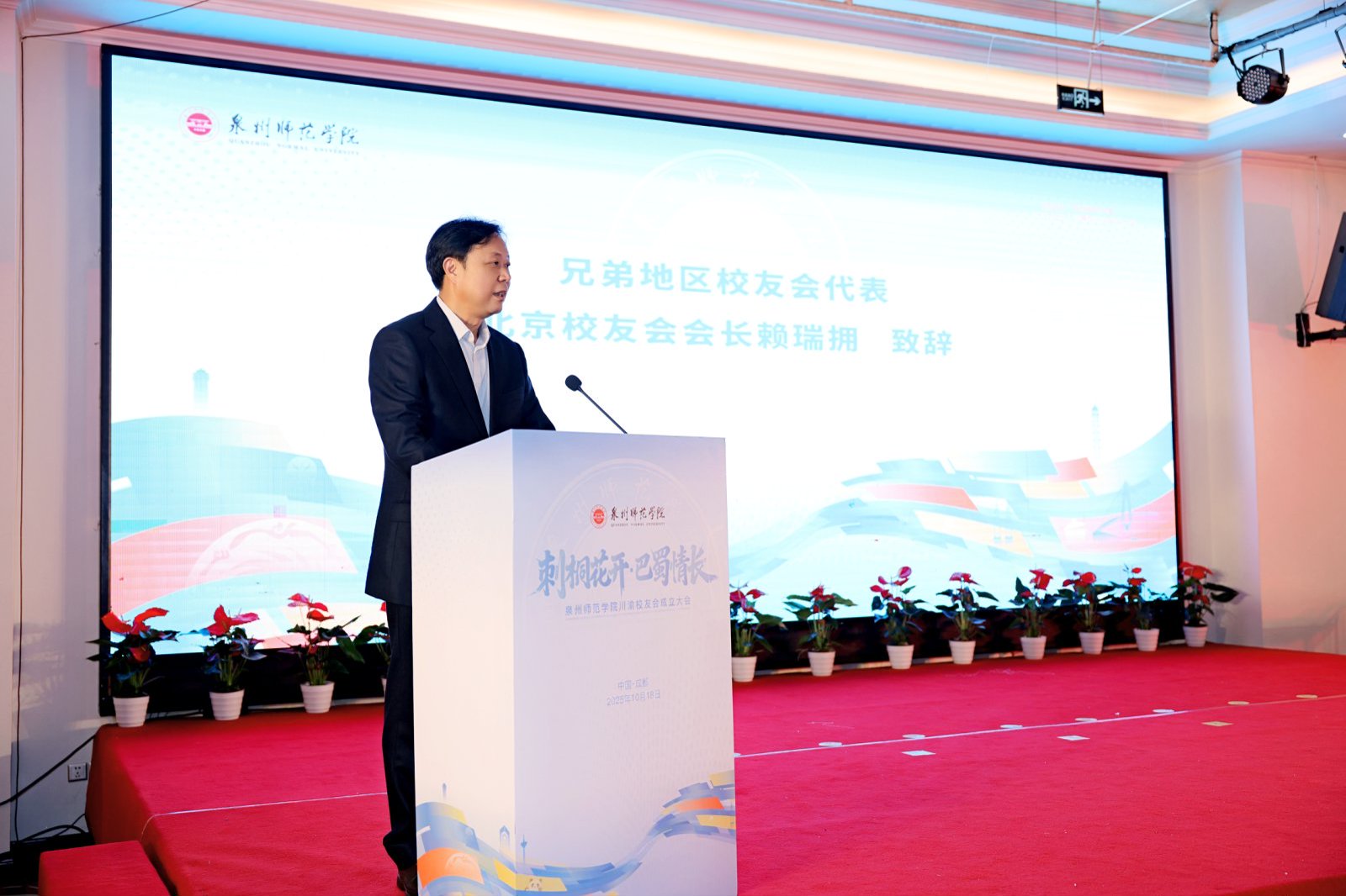 赖瑞拥代表兄弟校友会致辞,对川渝校友会成立表达祝贺,表示将联合学校各地区校友会互通资源、探索合作、凝聚合力,为母校事业发展贡献力量。