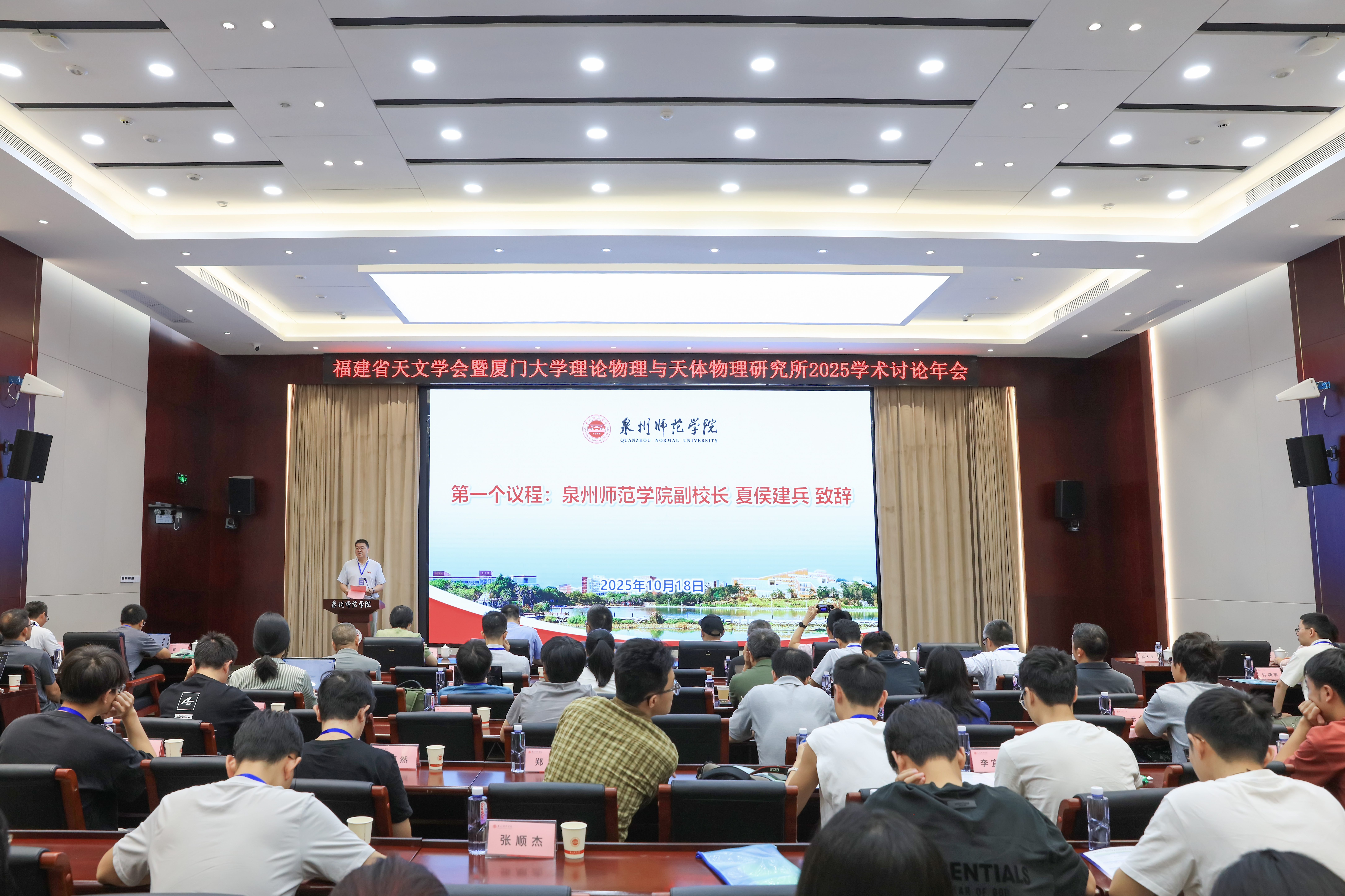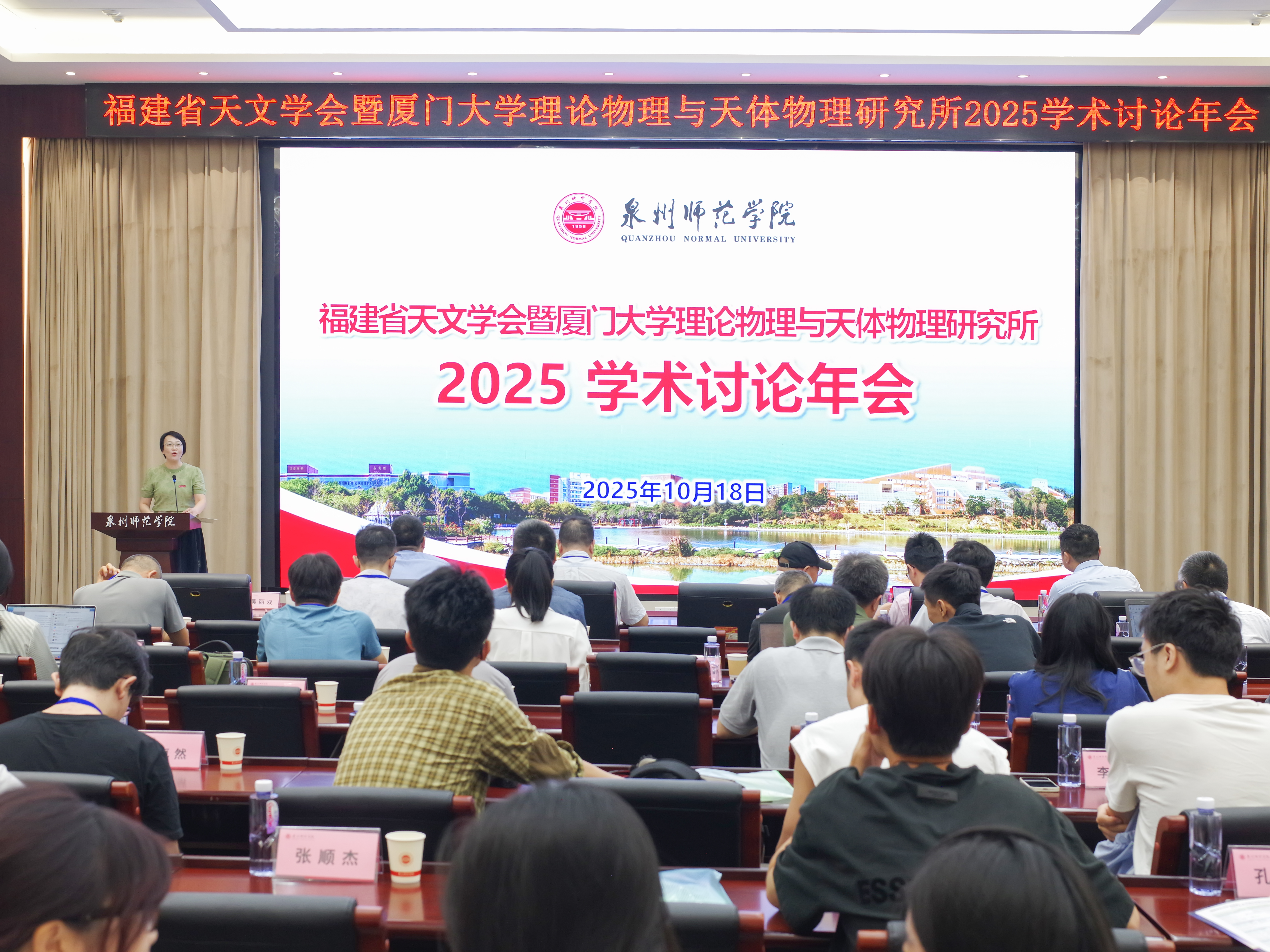 10月18日,福建省天文学会暨厦门大学理论物理与天体物理研究所2025学术讨论年会在我校举行。副校长夏侯建兵出席活动。国家杰出青年基金获得者、教育部“101计划”《热力学与统计物理》课程负责人、厦门大学赵鸿教授,厦门大学物理科学与技术学院副院长、福建省天文学会理事长顾为民教授,厦门大学物理科学与技术学院副院长、福建省物理学会副理事长吴顺情教授,厦门大学理论物理与天体物理研究所所长孙谋远教授、副所长张勇教授,2024年达摩院青橙奖获得者、中国科学院大学黄样副教授,我校科研处、物理与信息工程学院有关负责人,两校师生代表等参加。
