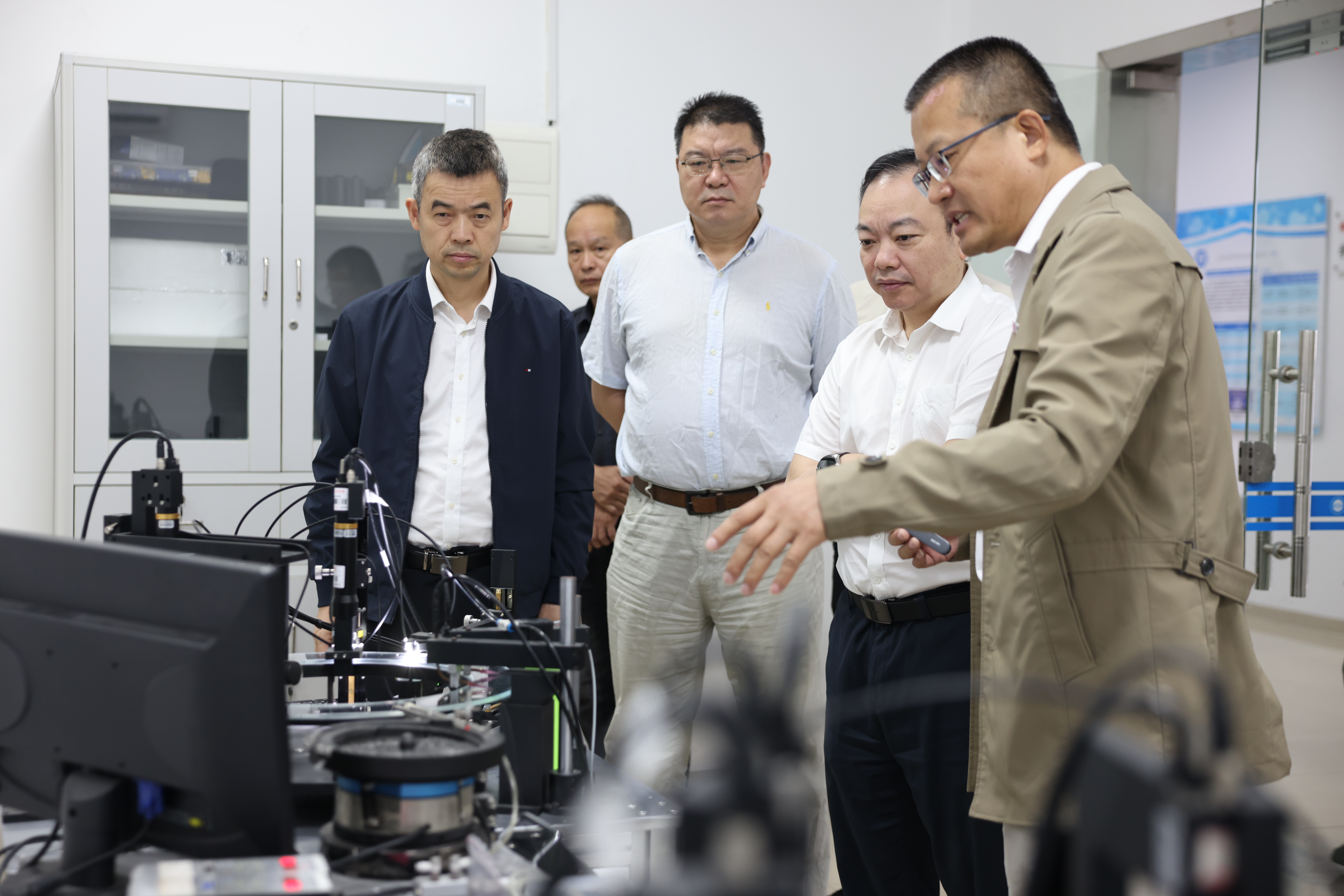 黄舒一行实地调研了光子技术研究院、福建省绿色环保功能鞋材工程研究中心等场地,全面了解学校的发展历程、办学特色及建设现状。调研组充分肯定了学校的办学成效,期望学校进一步发挥学科优势和办学特色,全面提升服务国家战略与地方经济社会发展的能力。