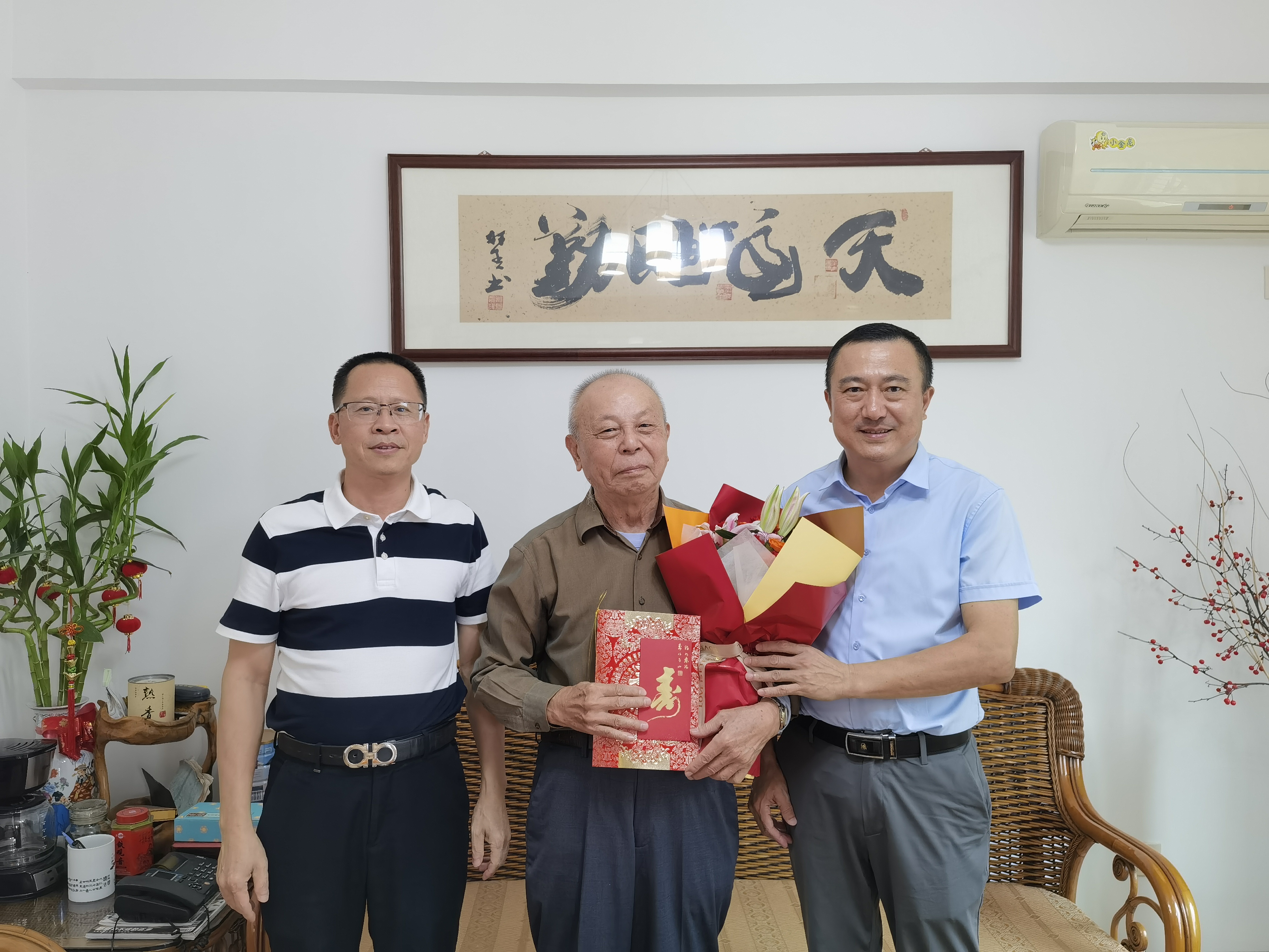 秋阳送暖,花香情浓。在重阳节来临之际,受校党委委托,校党委副书记林伟带队走访慰问了我校70、80、90岁老同志,代表学校向他们致以节日的诚挚问候和崇高敬意,并送上鲜花、贺卡及祝寿金。