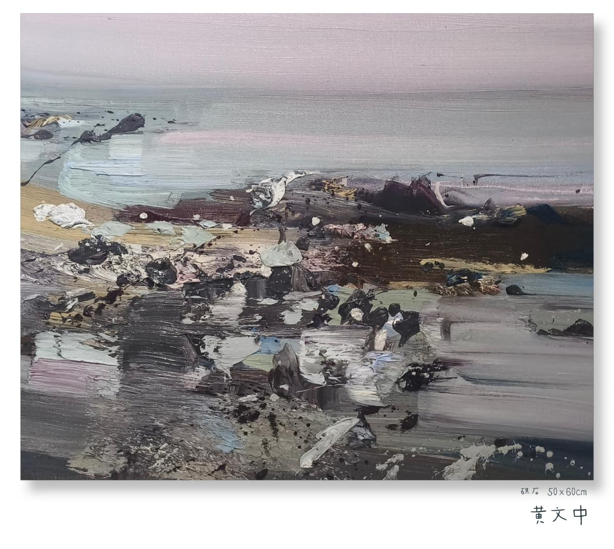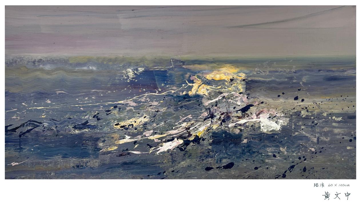 黄文中在艺术创作道路上始终秉持深耕精神,其创作脉络清晰而扎实。从早期聚焦“十年一座山”的山体主题,逐步发展为“山光水色”再到“跨越山海”的山水并重。笔触表达上,由最初横平竖直、方硬为主的风格,演进为含蓄幽微、虚实相生的细腻质感;造型呈现上,在保留雄强厚重基调的同时,融入轻盈灵动的元素,最终达成“山亦是水,水亦是山”的意境融合;色彩运用上,更是突破印象派自然光影的局限,探索出超越时空维度的色彩表达体系。在艺术理念层面,黄文中始终坚信“万物有灵”,以作品为载体追求心灵的自由表达。