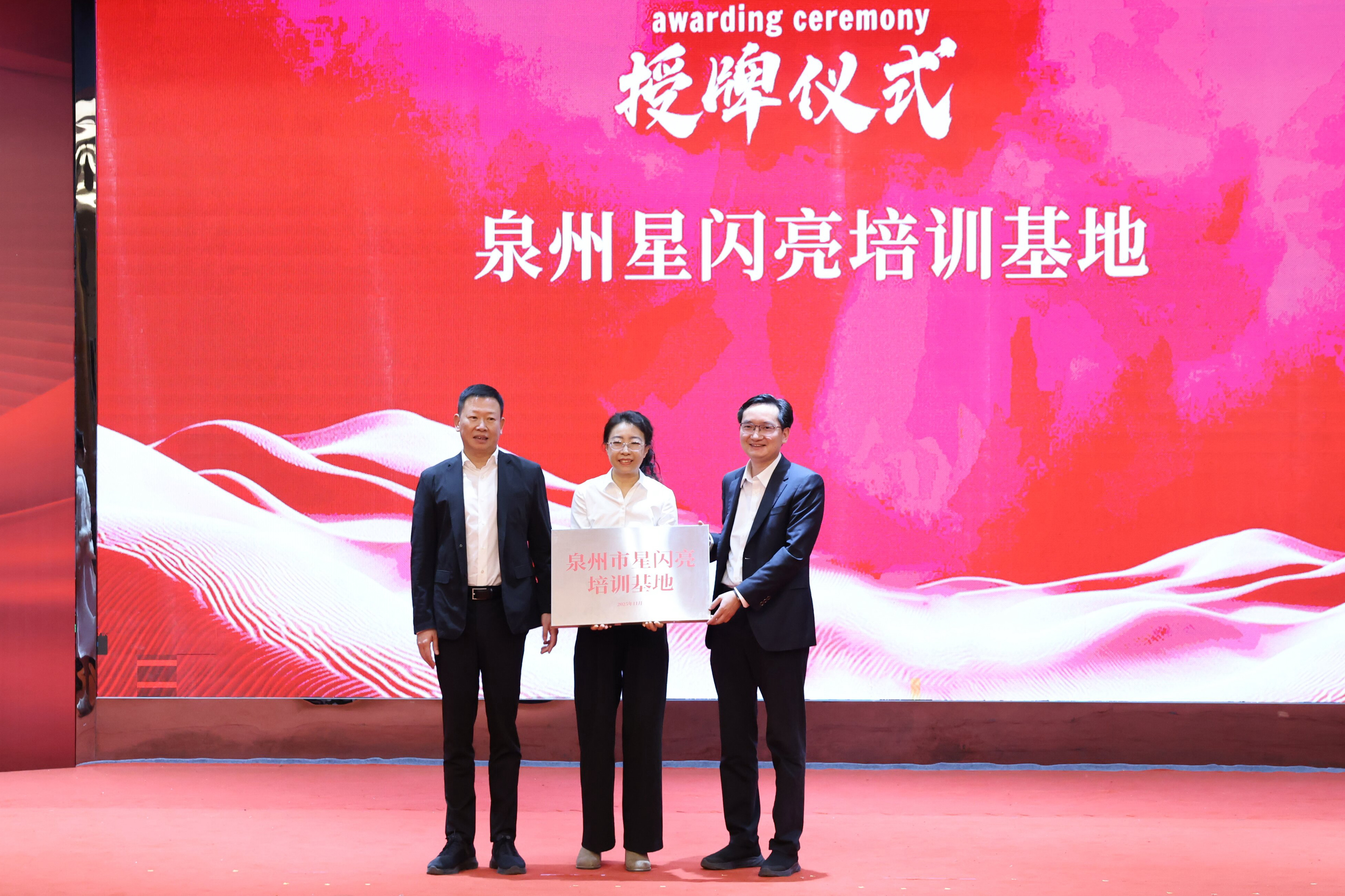 黄辉灿为英国威廉希尔公司官网教育科学学院与泉州中泉集团授牌,成立“泉州星闪亮培训基地”,该基地将致力于为孤独症儿童家长及专业人员提供优质课程与服务支持。活动现场,还举行了“医康教”与人工智能融合应用签约仪式。