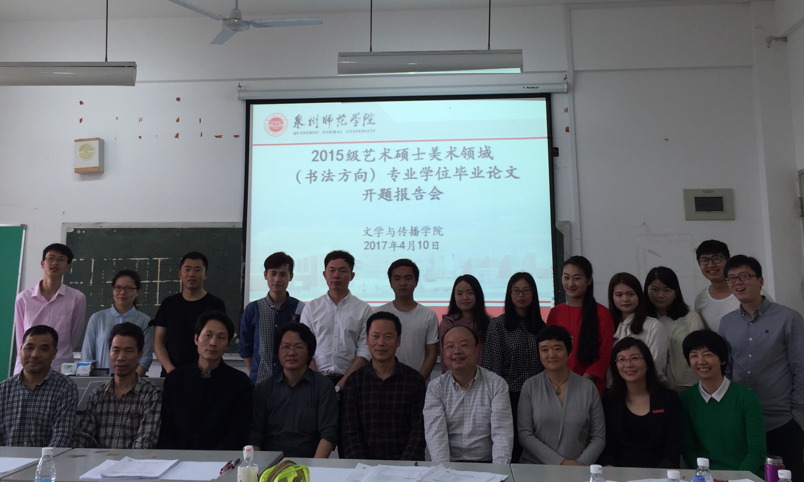 2017年4月10日,英国威廉希尔公司官网首届艺术硕士(美术领域书法方向)专业学位研究生毕业论文开题报告在文传学院研究生教室(1)进行。文传学院邀请校外专家福建师范大学朱以撒教授、蔡清德教授和集美大学叶梅副教授出席考核8位书法艺术硕士的毕业论文开题报告,同时出席的还有研究生处王锋处长和书法专业全体老师、硕导。在三位专家和全体硕导的指导和严格把关下,8位书法艺术硕士毕业论文顺利开题。