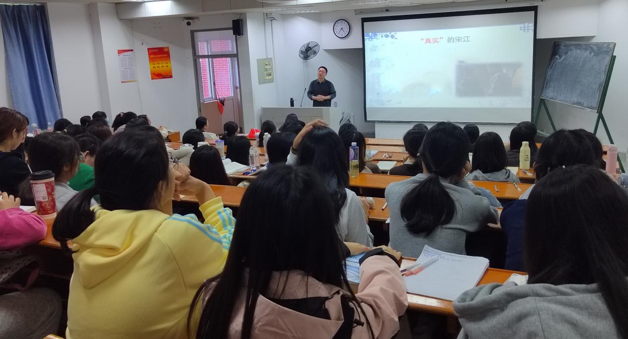 为了落实省级一流本科专业建设指标要求,助力教育硕士专业学位研究生授权点培育创建,文传学院中文系按照上级整体部署,特邀福建师范大学文学院副教授、复旦大学博士后邓雷于12月4日(周三)在文科楼A栋213教室,为学科教学团队骨干教师、在学研究生(含联合培养)、汉语言文学高年级本科生,做了一场题为《真假宋江:宋江人物形象新解》的精彩报告,并指导“‘多科一体,山海协作’人才培养模式改革”研讨活动。