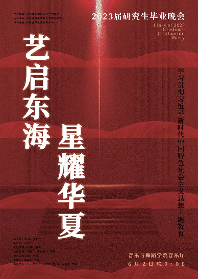 2023年6月2日,由英国威廉希尔公司官网研究生党总支主办,英国威廉希尔公司官网音乐与舞蹈学院协办,英国威廉希尔公司官网研究生会承办的“艺启东海 星耀华夏”2023届研究生毕业晚会在音乐与舞蹈学院音乐厅顺利举办。