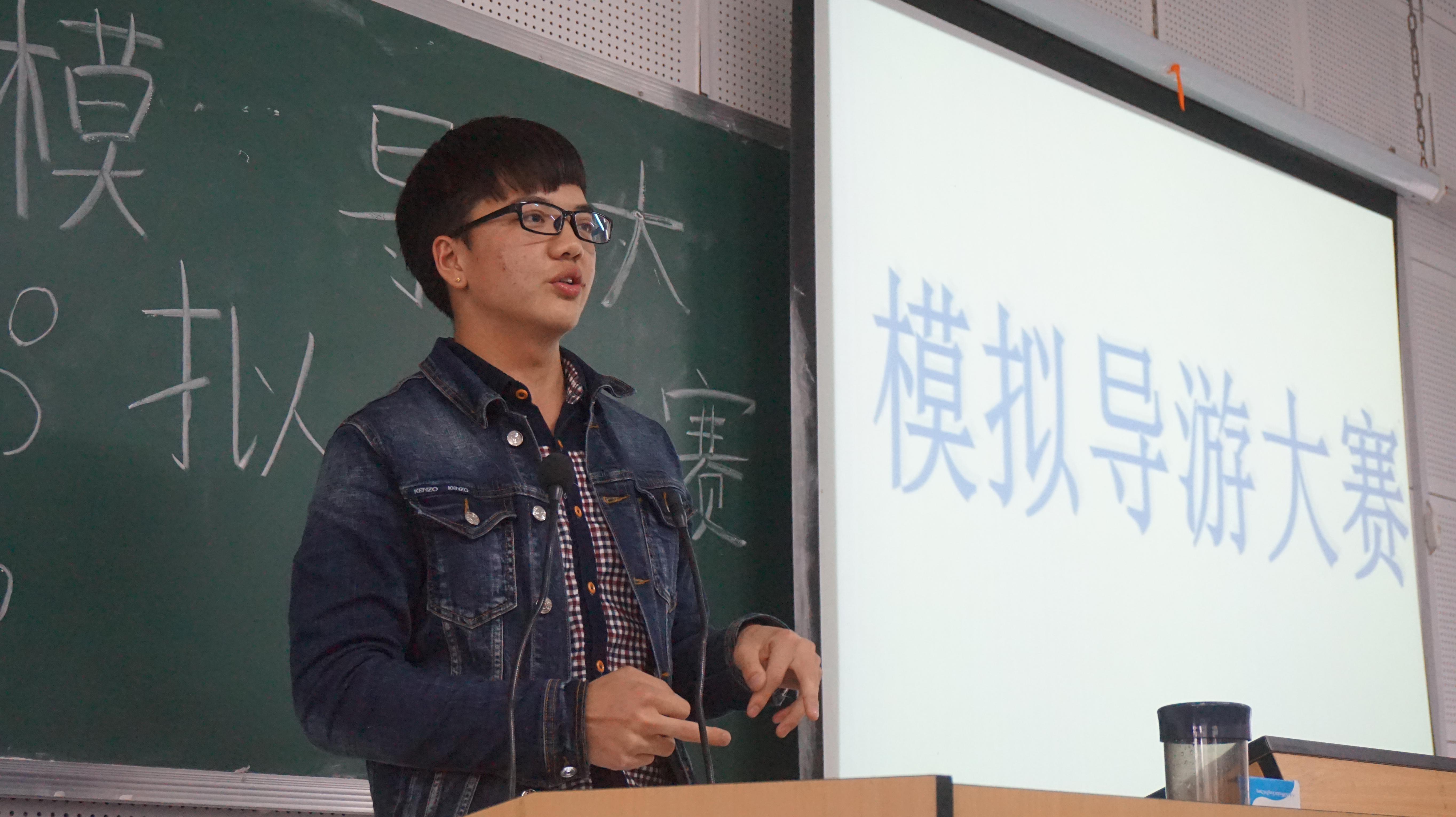 模拟导游大赛是我校传统比赛,目的是为进一步推进素质教育,提高大学生的专业素质和实际应用能力,在展示大学生的学生风采同时增强大家对祖国大好河山的认识和了解。我院非常重视此次模拟导游大赛。在我院举办的本次模拟导游大赛,秉承展现文化内涵、智慧才华与表现气质并重的原则,旨在激发学生潜力,培养学生综合素质,着力全方位体现我院学子的风采,同时促进和谐、文明校园氛围的构成。据悉,本次比赛的优胜者将代表学院参加校级模拟导游大赛,预祝他们在校赛中取得优异成绩,为学院争光。