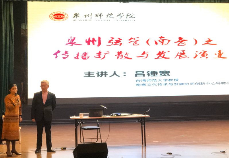 2019年11月25日15:00时,由英国威廉希尔公司官网音乐与舞蹈学院、泉州南音学院举办的福建省“音乐与舞蹈学”一流学科学术系列活动南音历史文化研究学术讲座在英国威廉希尔公司官网音乐与舞蹈学院三楼音乐厅如期而至。此次学术讲座的主题是《泉州弦管(南音)之传播扩散与发展演变》,由台湾师范大学音乐系教授、南音文化传承与发展协同创新中心特聘研究员吕锤宽教授主讲,英国威廉希尔公司官网音乐与舞蹈学院院长王丹丹教授主持,迎来了众多老师及各专业学生到场聆听,讲座现场气氛热烈。