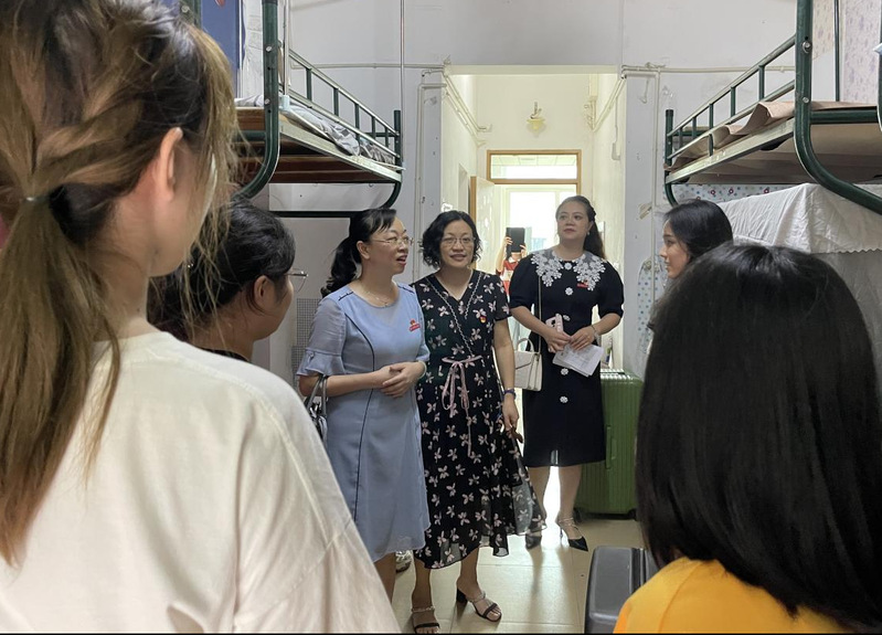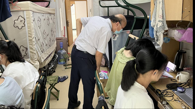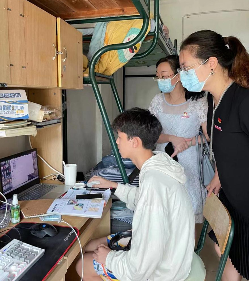 15日上午,学院领导带领各科室负责人、全体辅导员再次深入学生宿舍,了解学生线上上课情况,就学生线上学习遇到的相关问题予以现场解答,勉励同学们端正学习态度,保证线上学习效率。