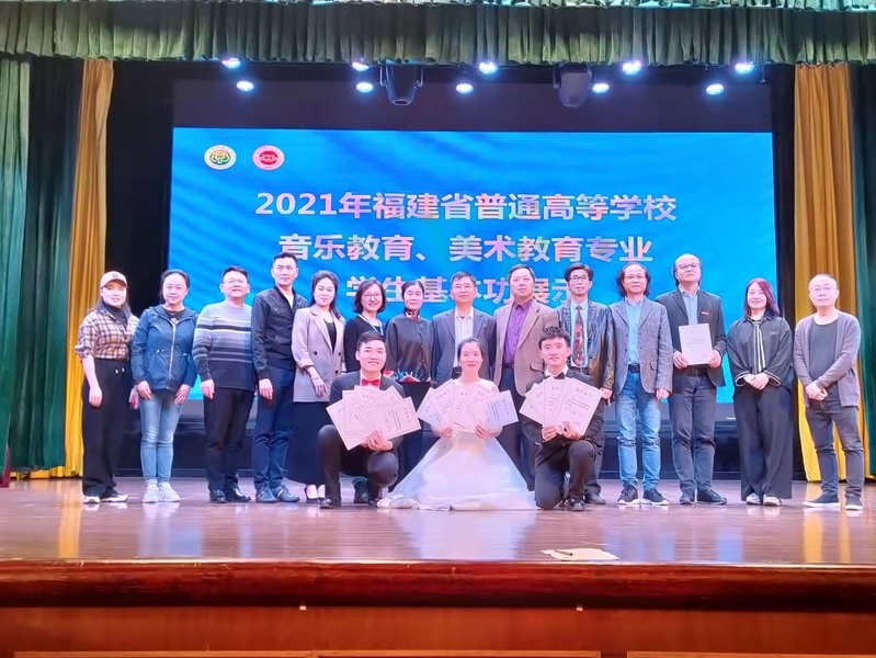 本次音乐教育专业基本功展示包括教学能力和“微课”展示两个部分。来自全省11所本科院校、3所专科学校的学生分别从歌唱与钢琴伴奏、自弹自唱、合唱指挥、中外乐器演奏、舞蹈、“微课”等六个方面展示音乐教学能力。经过2天激烈角逐,我校与福建师范大学均获得2021年全省普通高等学校音乐教育专业学生基本功展示本科组团体一等奖,福建幼儿师范高等专科学校获专科组一等奖,我校2018级学生陈聪睿、刘军涛、夏文强获本科组个人全能一等奖,福建幼儿师范高等专科学校学生卓颖获专科组个人全能一等奖。