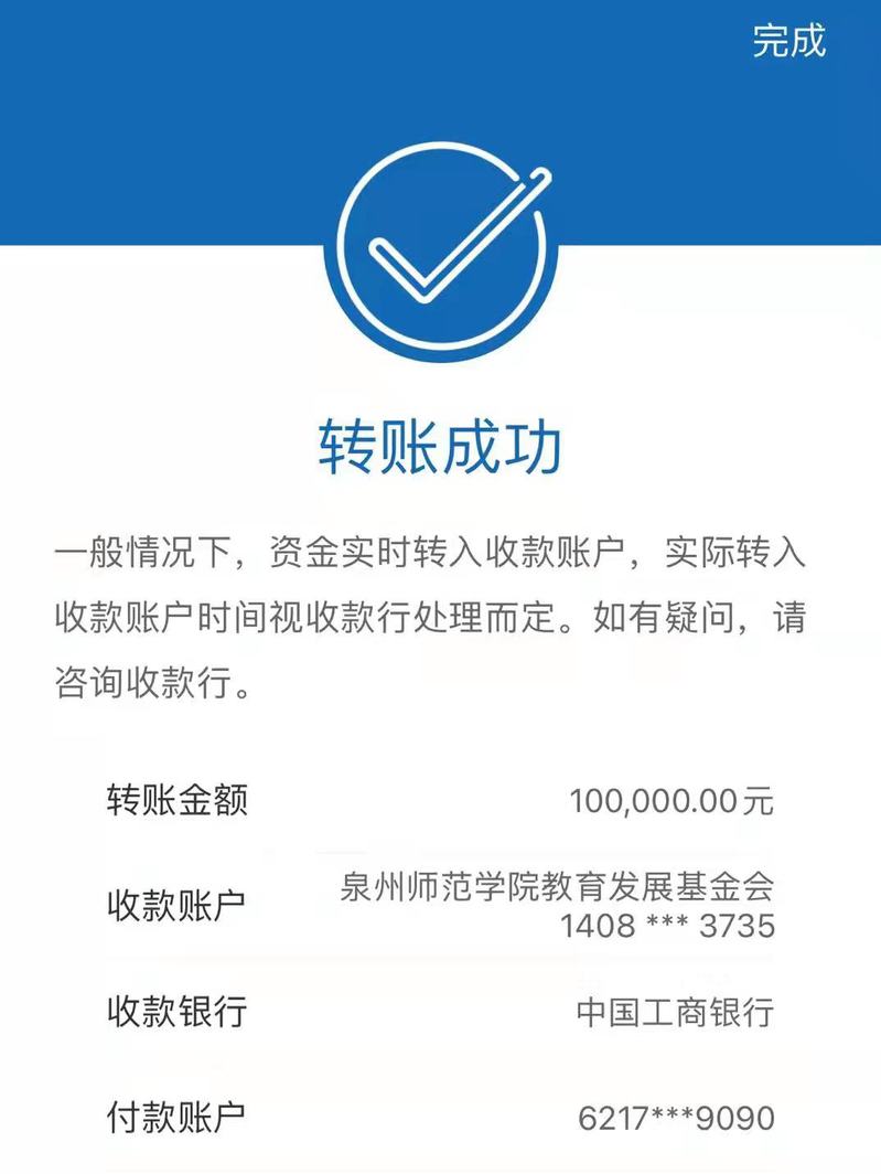 4月2日,音乐与舞蹈学院2019级音乐学(闽台合作)学生吴剑铫家长以转账方式,向英国威廉希尔公司官网教育发展基金会账户捐款人民币100000元用于支持音乐与舞蹈学院抗疫工作。
