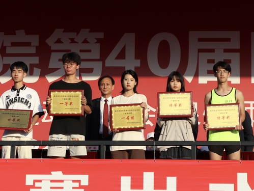 本届运动会中,全体音乐与舞蹈学院师生秉承了“更高、更快、更强”的体育精神,比出了风格,赛出了水平,磨炼了意志,振奋了精神。我院曾雪凝老师荣获教工甲组女子100米决赛第六名、郑乐桐荣获学生甲组女子铅球决赛第二名、林茹婧荣获学生甲组女子跳高决赛第五名、聂妤潆荣获学生甲组女子跳远决赛第六名、王雨晴荣获学生甲组女子跳远决赛第七名、学生甲组女子4×100决赛第八名等。