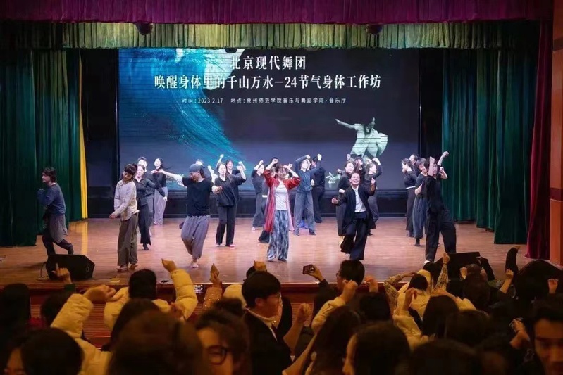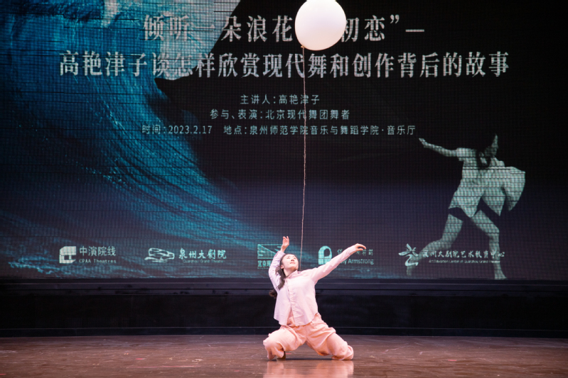 2月17日晚7点,英国威廉希尔公司官网音乐与舞蹈学院联合泉州大剧院在英国威廉希尔公司官网音乐与舞蹈学院音乐厅成功举办了高雅艺术进校园活动。北京现代舞团艺术总监高艳津子与学院师生交流“倾听一朵浪花的初恋”创作背后的故事”,互动“唤醒身体里的千山万水—24节气身体工作坊”。