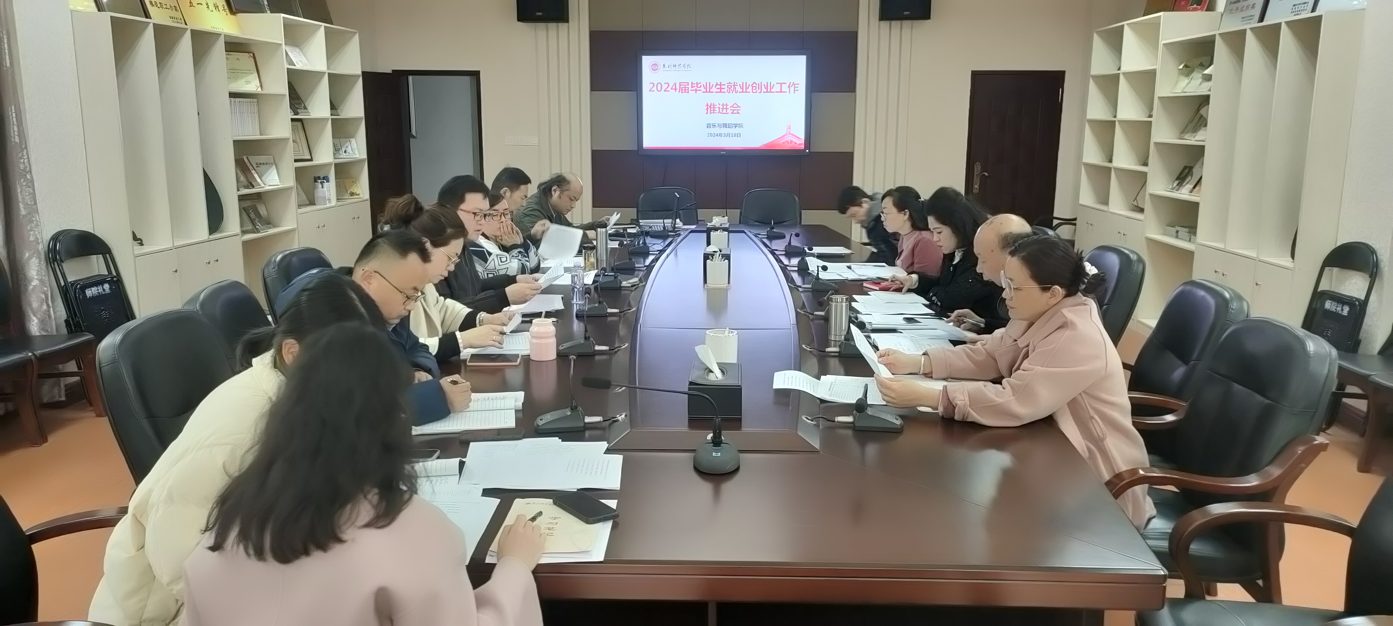3月18日下午,音乐与舞蹈学院召开2024届毕业生就业创业工作推进会,会议由学院党委书记苏国柱主持,院长、党委副书记陈恩慧,党委副书记兼纪委书记胡秋娇,副院长吴少静,副院长翁世晖,各专业主任,各科室负责人及全体辅导员参加会议。