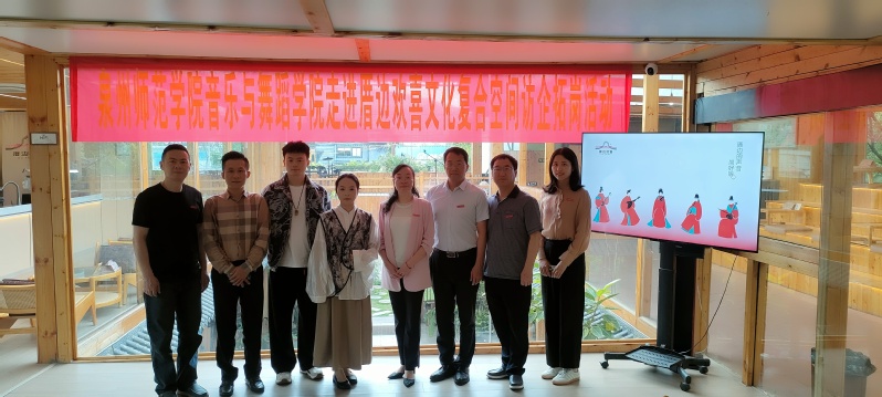 在泉州厝边欢喜文化传媒有限公司,陈桂敏总经理等热情接待我院一行,带领大家参观了公司园区,介绍了公司发展情况,提出双方在开展非遗南音传承与发展、项目研发、专业展演、实习实践等方面合作的建议,通过双方资源互补实现互惠互利。胡秋娇对泉州厝边欢喜文化传媒有限公司在非遗南音传承与发展取得成效表示赞赏,希望通过共同努力,实现资源互补,提升双方服务社会的影响力,持续提升我院实习生的实践教学水平,促进毕业生就业,在开展产学研和服务区域等方面实现合作双赢。