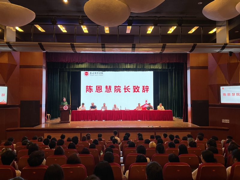 会上,院领导、专业主任、各科室主任为新生代表佩戴校徽。陈恩慧代表学院向新同学的到来表示热烈的欢迎,并从学院概况、教学、科研、展演等方面作了简要介绍,对全体新同学提出要以积极开放心态去拥抱时代、以开放的思维去规划未来、以开放的格局去沟通合作、以开放的视野去培养专业能力等四点要求,希望每一位新同学都能在大学期间寻得兴趣,学得技能,求得真知,获得智慧,悟得真谛,遇见更好的自己!