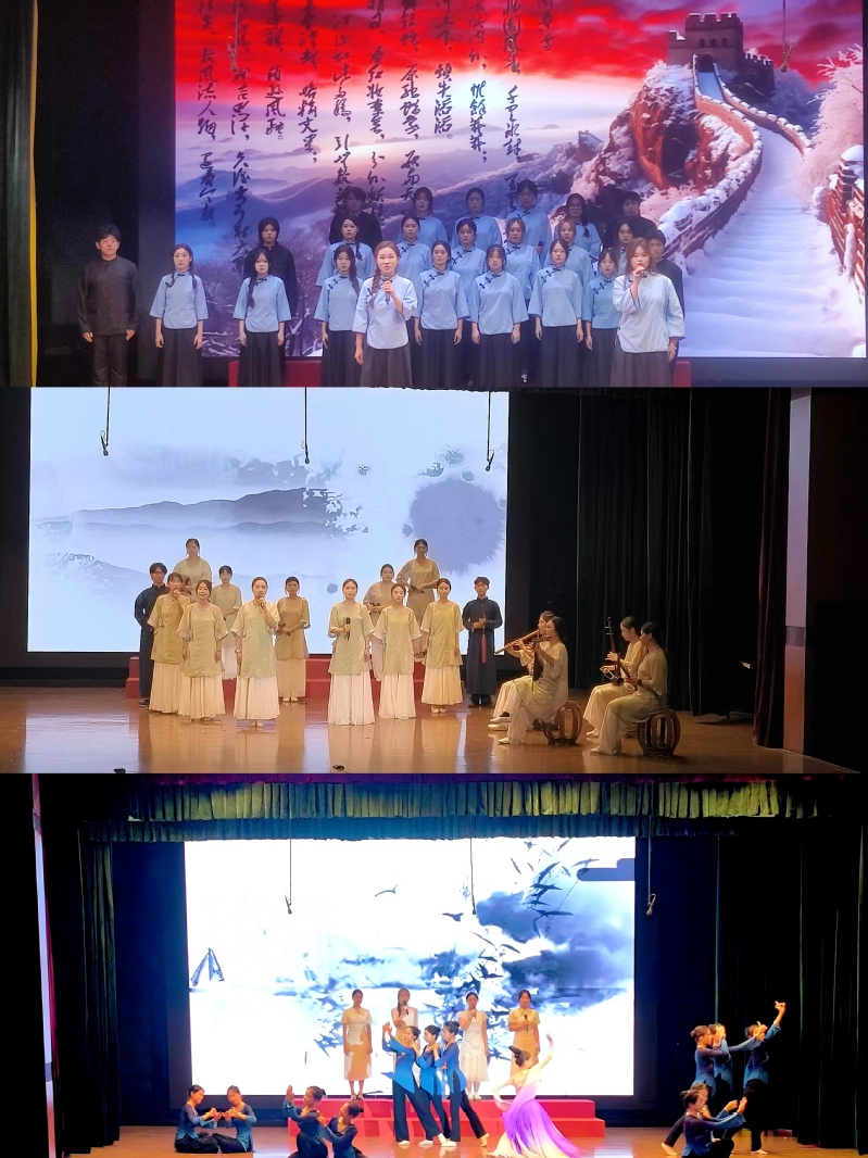 参赛班级以歌颂党、歌颂祖国歌颂中国特色社会主义为主要内容,精选一批红色经典篇章、国学经典、诗词歌赋、散文札记等作为诵读篇目,融入音乐、舞蹈、南音专业特色。24舞蹈学在《唐诗里的中国》融入舞蹈表演,讲述了唐朝时期诗歌的繁荣景象,表达了对唐朝文化的怀念和对祖国的热爱;22音乐学3班将情景剧融入《中华颂》,讲述各行各业的工作者为社会主义事业而奋斗的故事;22音乐学(南音)班将《刺桐红,爱国情》结合南音乐器的演奏,诉说了深深的爱国情。各个班级以讲、读、演、唱、舞等多种方式颂扬党领导人民创造的光辉业绩、宝贵经验,向全体同学呈现了一场精彩纷呈的视听盛宴。