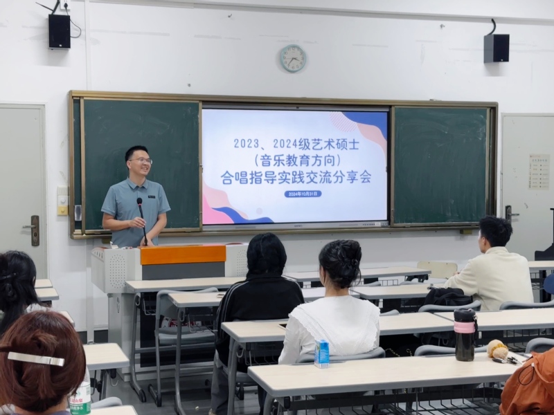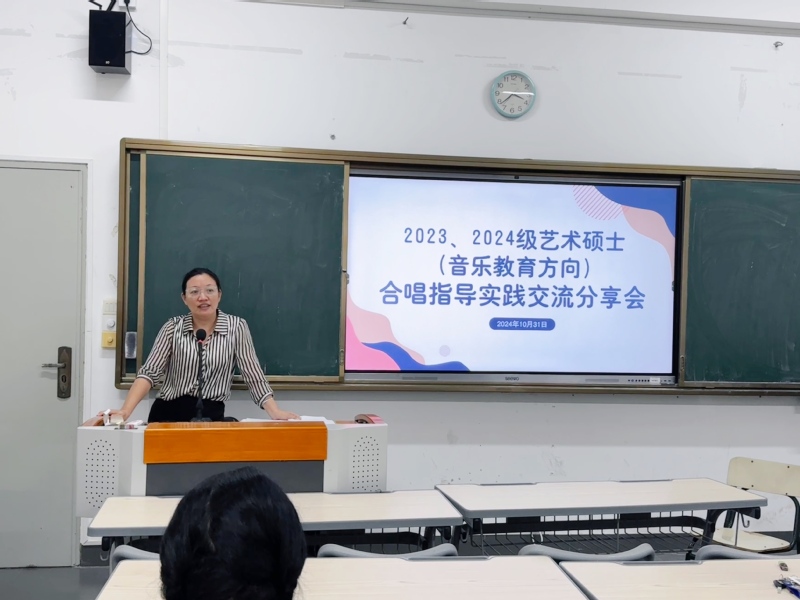 我院于10月31日下午举办艺术硕士(音乐教育方向)研究生合唱指导实践交流分享会活动。学院党委副书记兼纪委书记常飞云,副院长吴少静,辅导员吴亦伦以及2023、2024级艺术硕士(音乐教育方向)研究生参加会议。