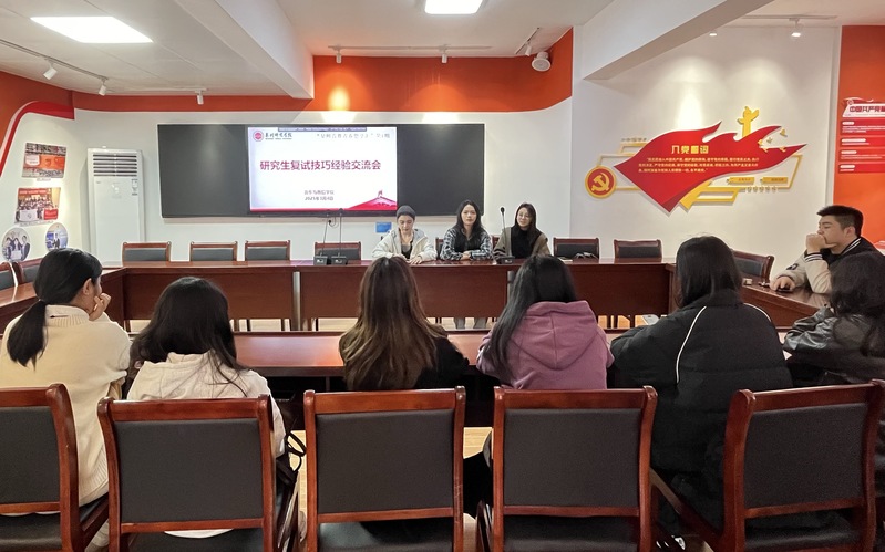 为加强考研指导与服务工作,音乐与舞蹈学院于3月4日下午C区13栋“一站式”学生社区新时代大学生文明实践中心举办“泉师音舞青春思享汇”第1期——2025年研究生复试技巧经验交流分享会,本次交流会由研究生辅导员吴亦伦主持,3名研究生及大四毕业班的同学参加。