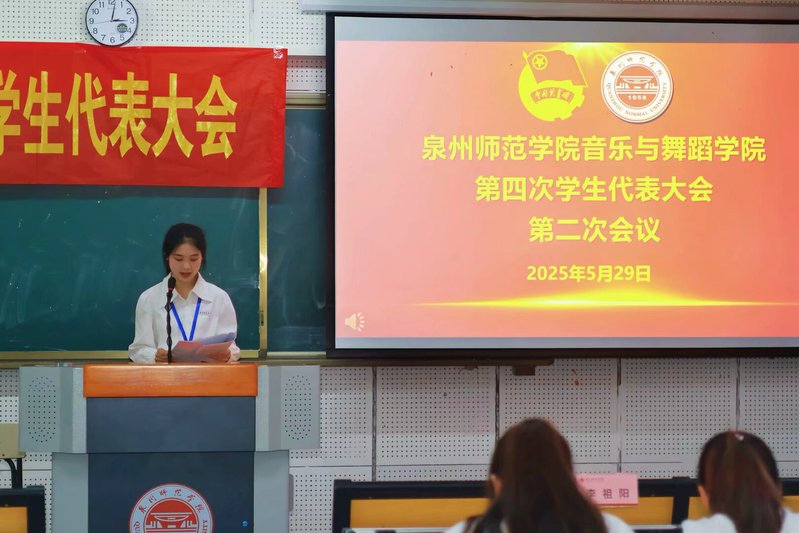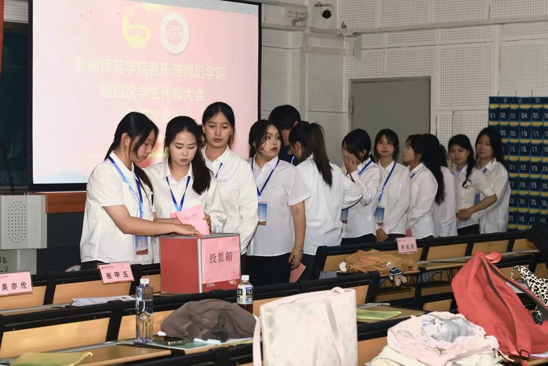 代表们讨论并提出了未来一年的工作目标,并以无记名投票方式选举出了新一届的学生会主席团成员,陈曼玲、黄佳艳等两位同学成功当选为音乐与舞蹈学院第四届主席团成员。