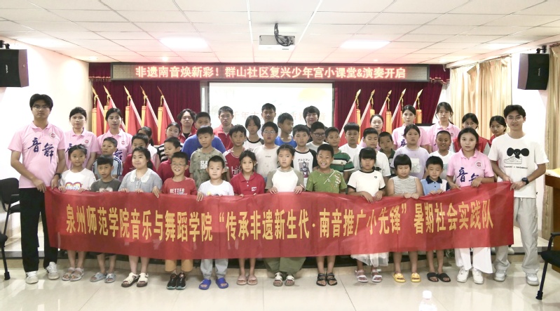 2025年8月4日至6日,我院“传承非遗新生代.南音推广小先锋”实践队在学工办李祖阳老师的带队下于泉州地区开展暑期社会实践活动。实践队聚焦“南音+传承推广”,以公益课堂、音乐汇演、研学活动等形式,探索世遗南音在服务公共文化中的应用路径。